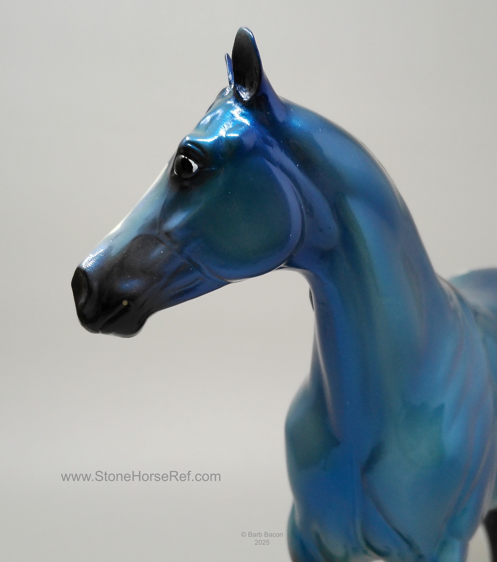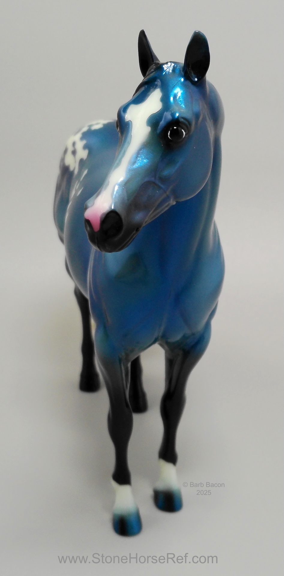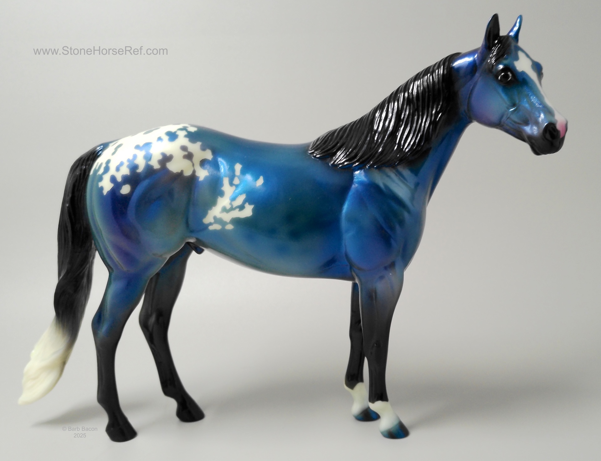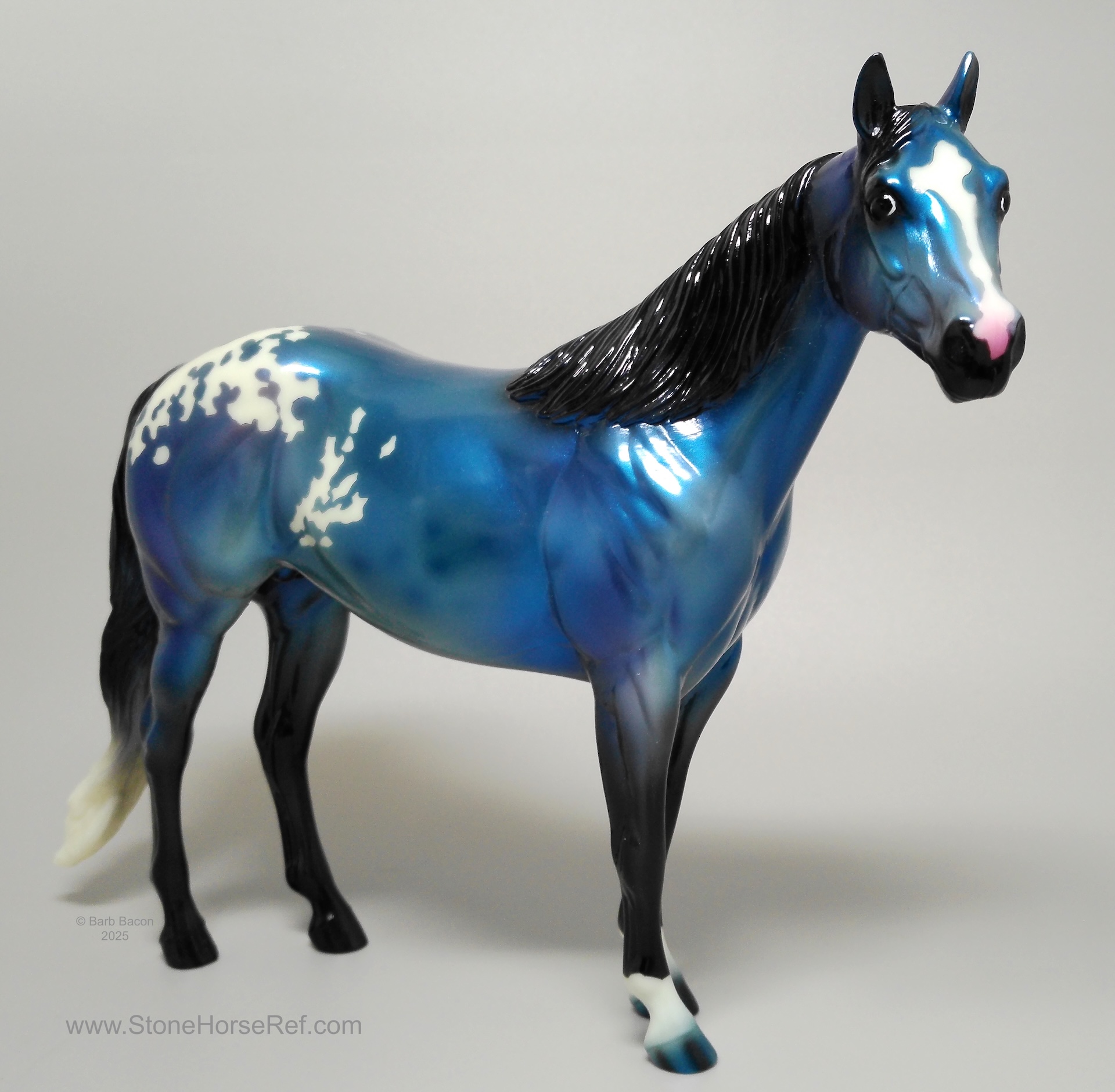The Mohawk Indian Princess Horse designed by Karen Gerhardt - available by lottery ONLY and limited to 200 horses. There are 25 pre-production models as well, with hind socks instead of front socks and a different blanket pattern and nose blazes. Also pictured is a photo of Little Bird and Fledgling. Fledgling was introduced as a special run of 225 at Equilocity 2002.
