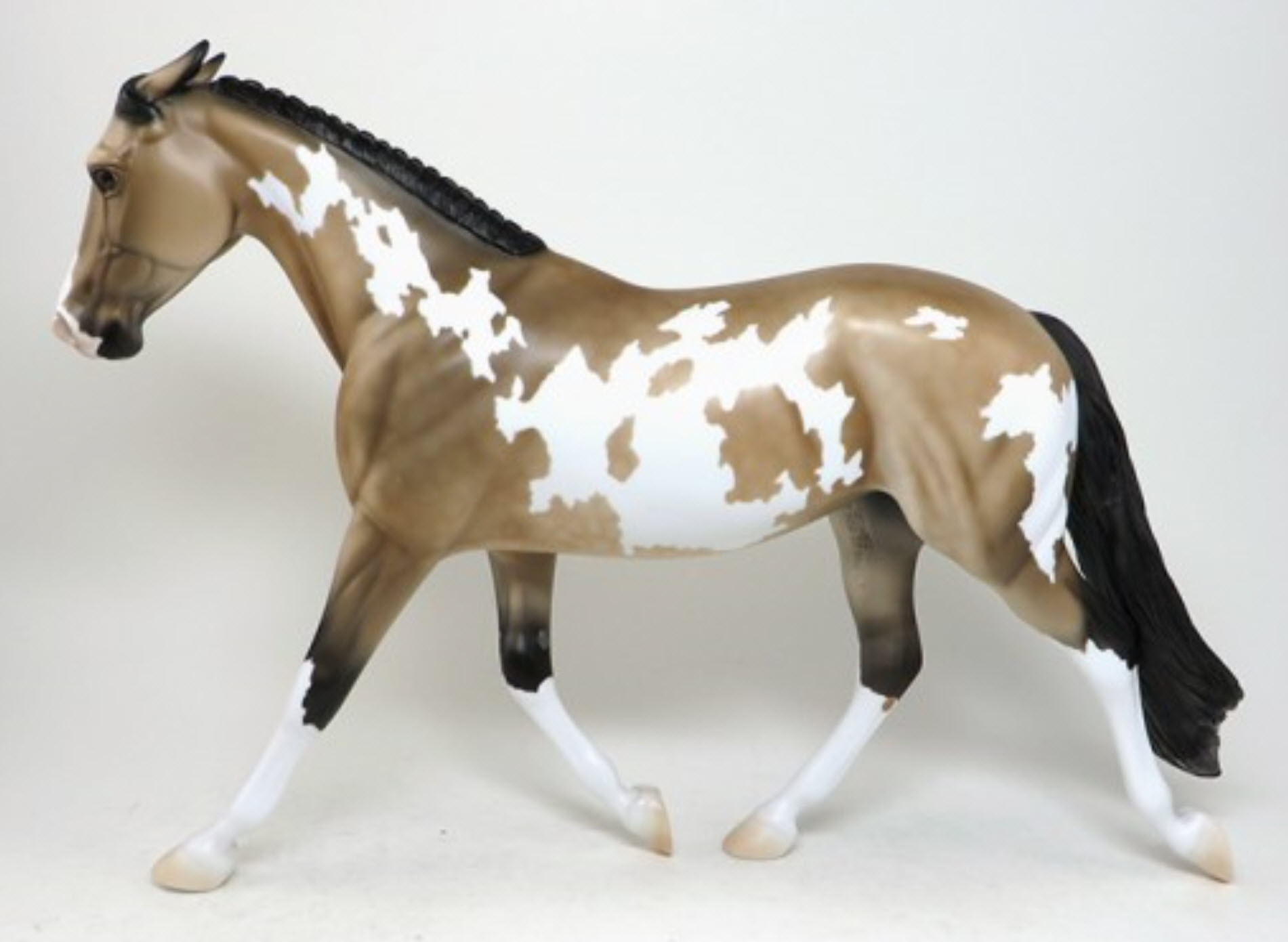 ACE'S HIGH - OOAK Buckskin Paint Palouse, Pinned Ears, Banded Mane, Carved Ears, Nose and Jaw, Long Custom Tail, 4/14. Hand Painted in Shipshewana, IN.
