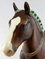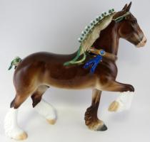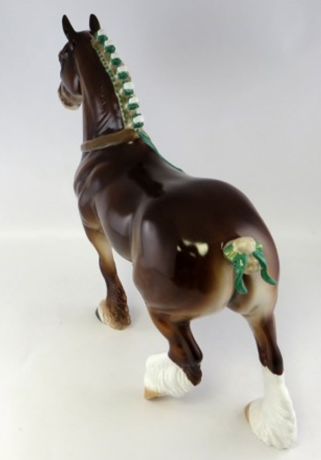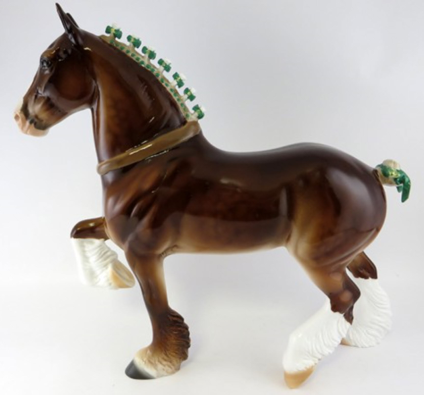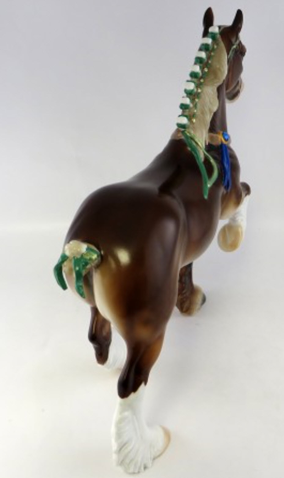 TIN SOLDIER - Limited Edition of 4, Trotting Drafter, Dark Dapple Sorrel, Light Green Bobs, Blue Ribbon with Crystal Gem, Carved Nose, Ears and Jaw, Custom Tail, EQ 2016 Release - Fairy Tails Do Come True. Hand Crafted & Painted in Shipshewana, IN.
