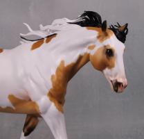 Akerman - OOAK Dapple Buckskin Pinto Remington Stock Horse, Custom Long Flowing Mane, Tail and Forelock with Extra Details, Etched Mapping, Brown Eyes, Customized by Mona, Painted by Caroline Boydston. Auction Reserve of $1250.