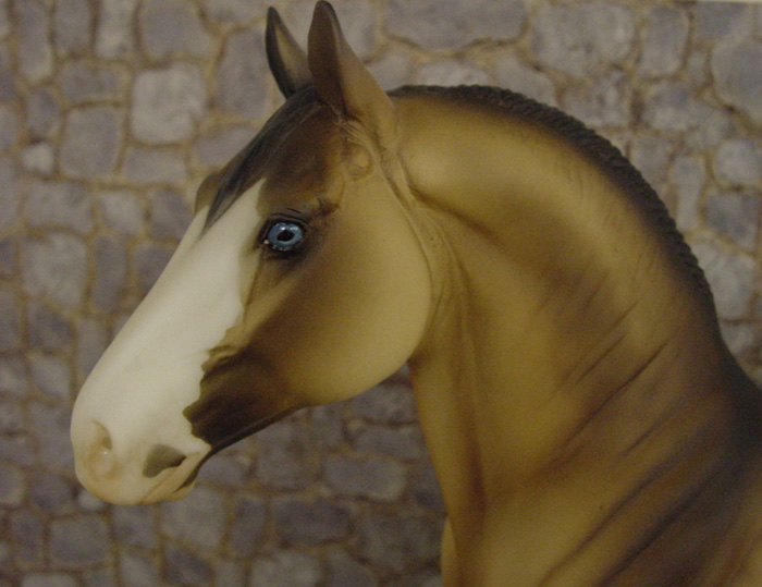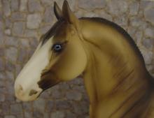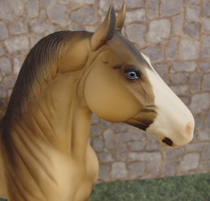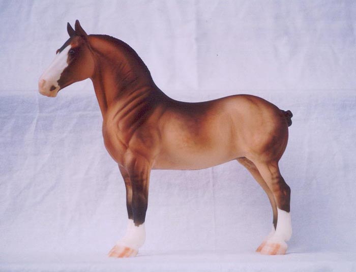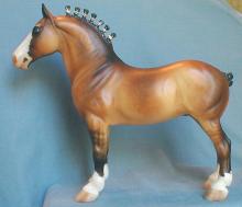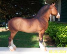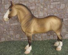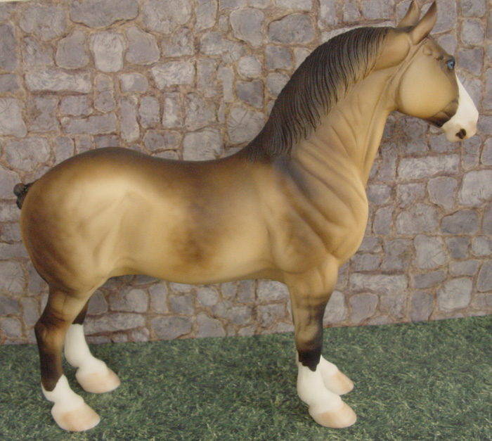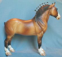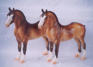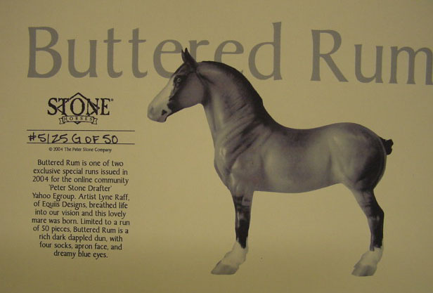 This is a special run for the 'Peter Stone Drafters' Yahoo group. This is a run of 25 glossy and 25 matte of both 'Buttered Rum' drafter, and 'Caramel Nikki' trotting drafter. Both have a dappled dun color, and the trotter has sabino markings. Drafter with bobs are pictures of the prototype. The actual production is a mare.