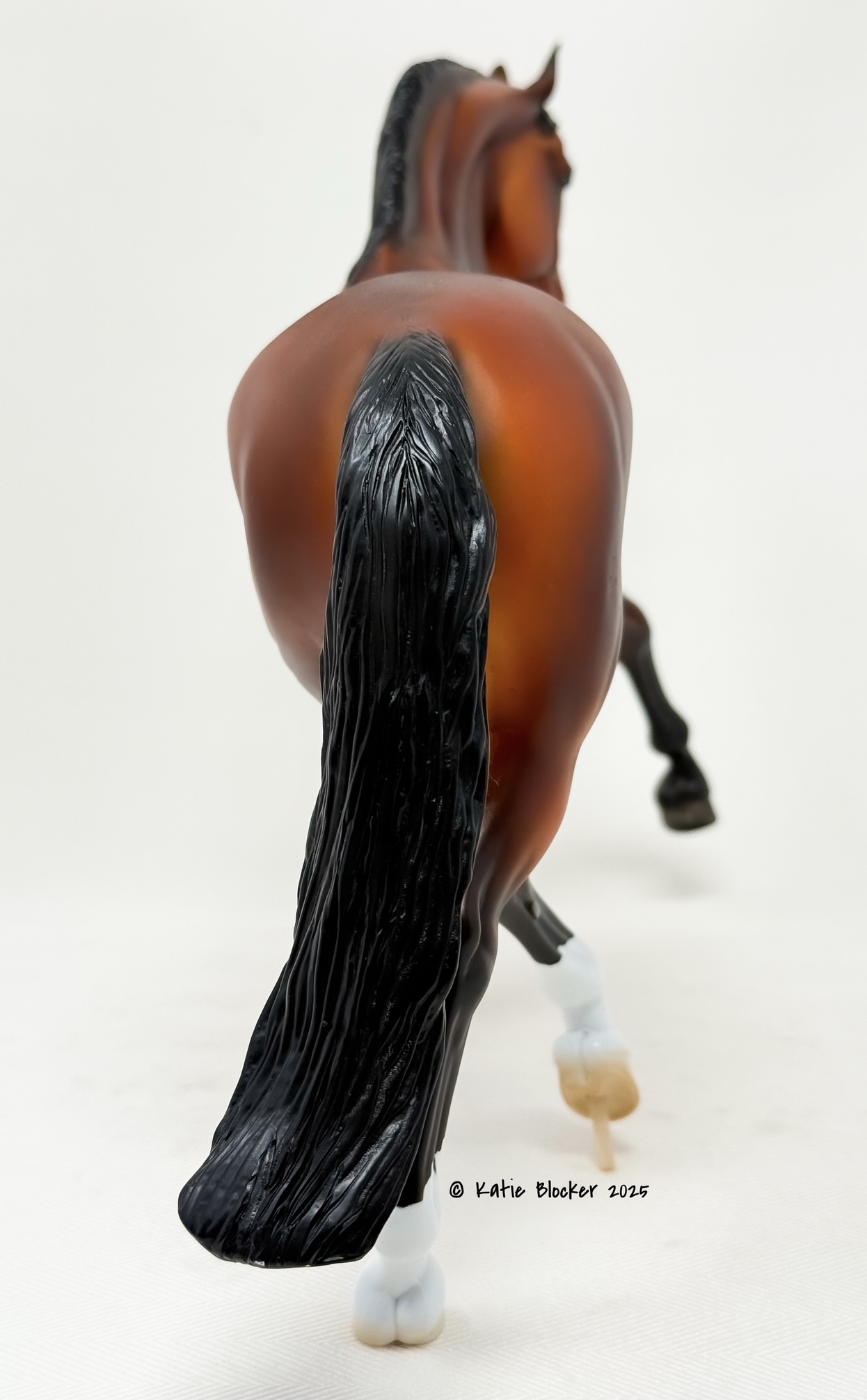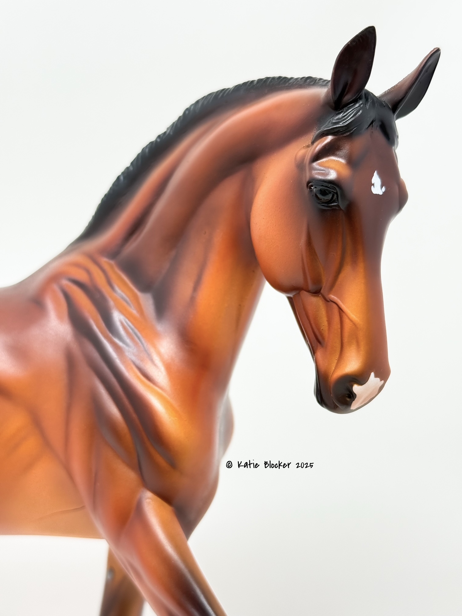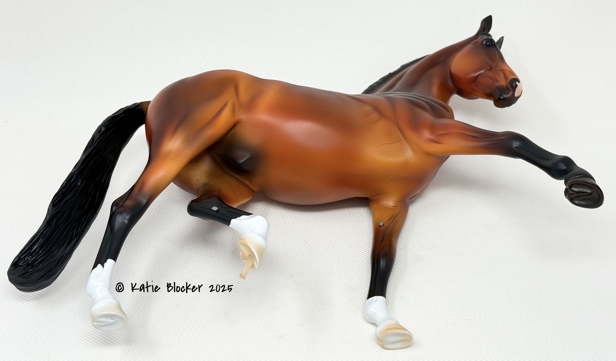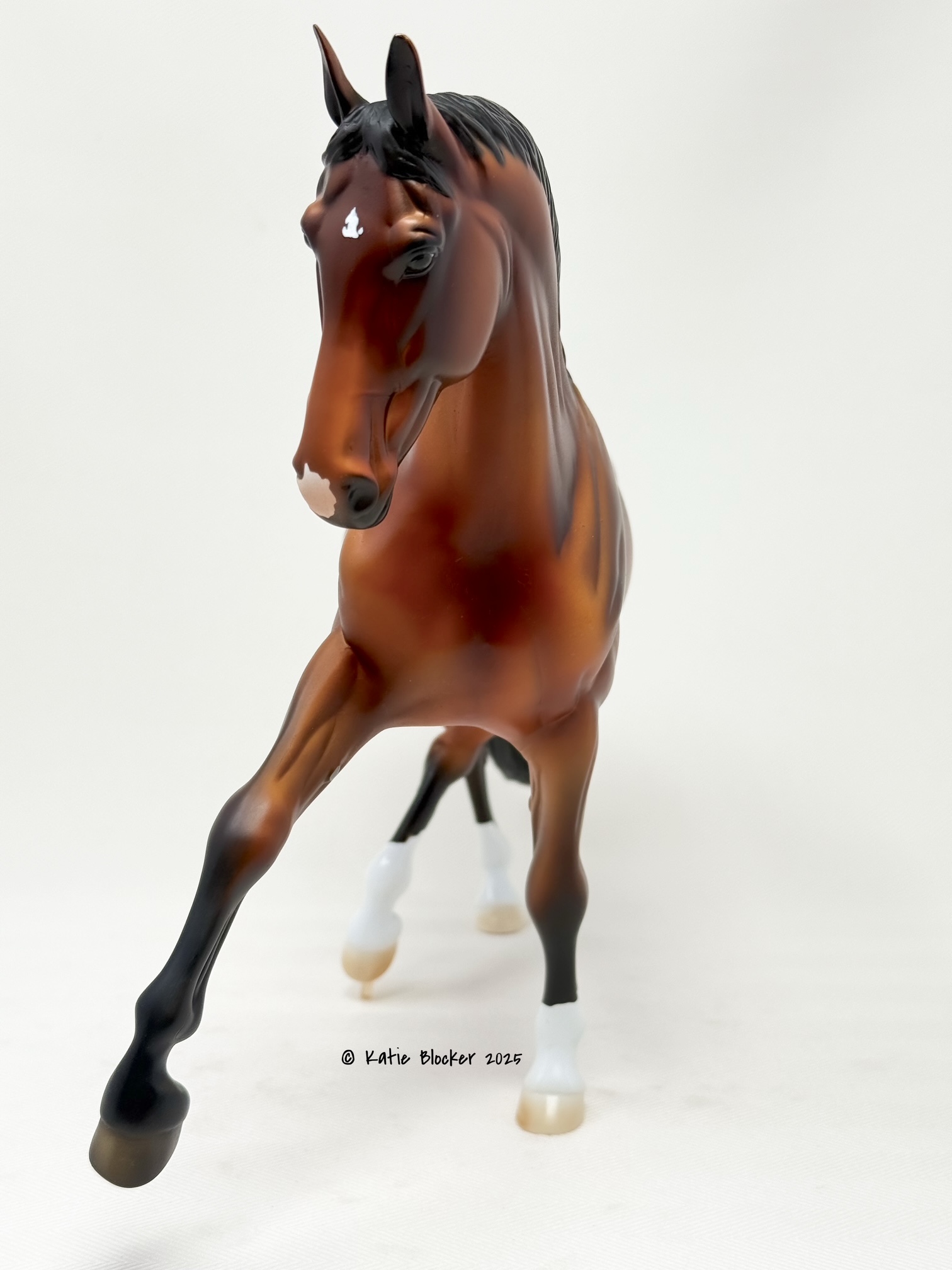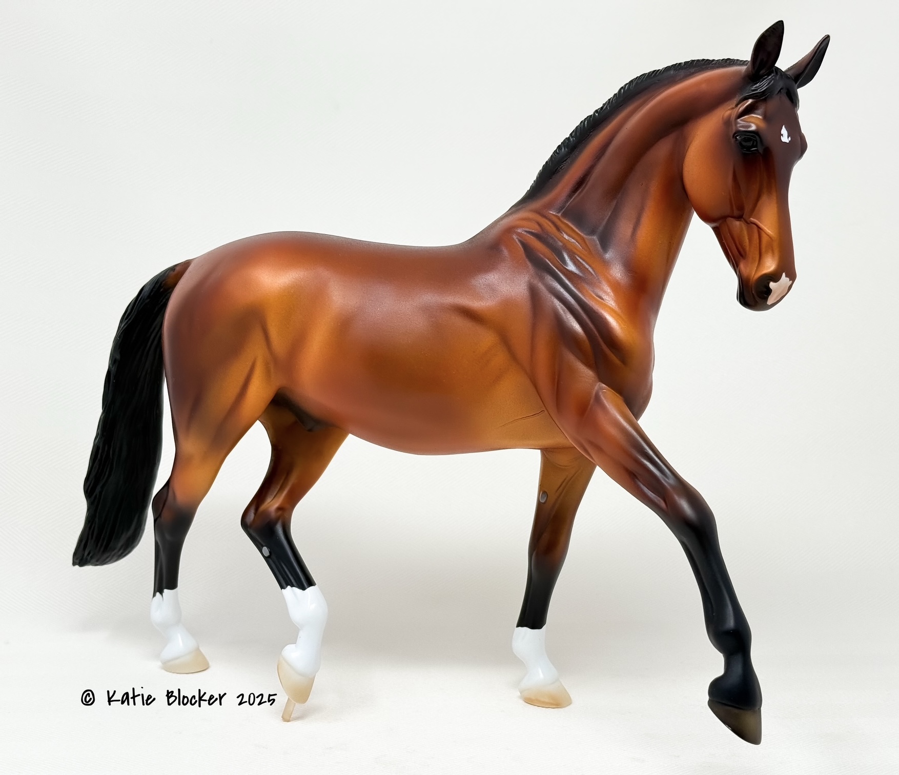 Released at Stone Horses Country Fair 2007, and based on a local schooling horse, Spago is the very first release of the newest mold, a Warmblood doing a Half-Pass Dressage movement. This is a run of 150 pieces.