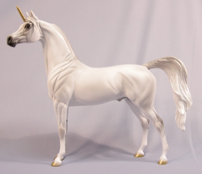 OOAK White Arabian with Custom Unicorn. Painted and signed by Gretchen Oneail. Available in matte or glossy finish.
