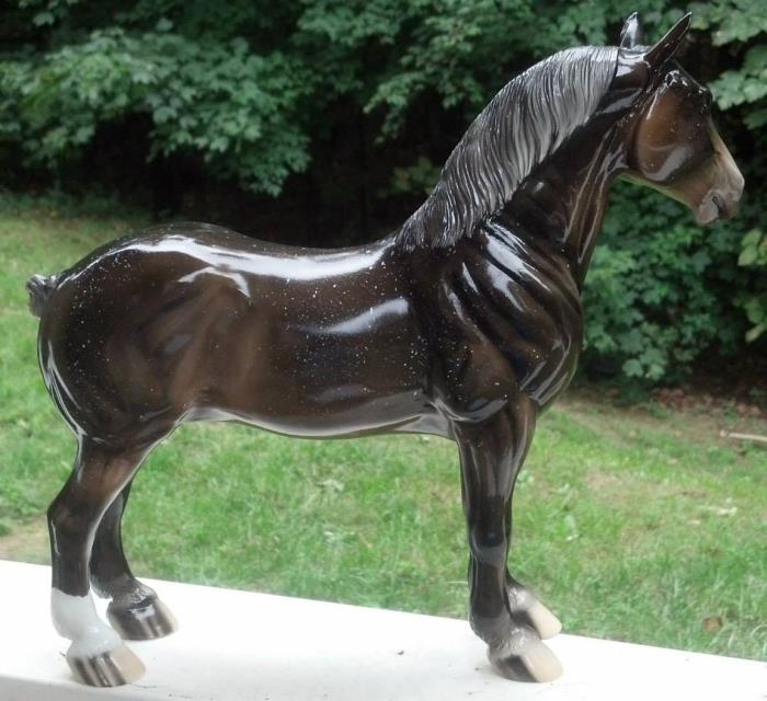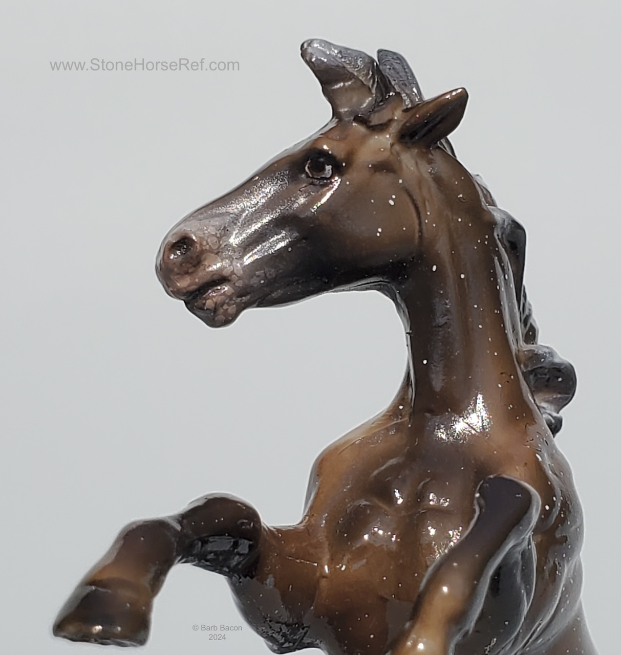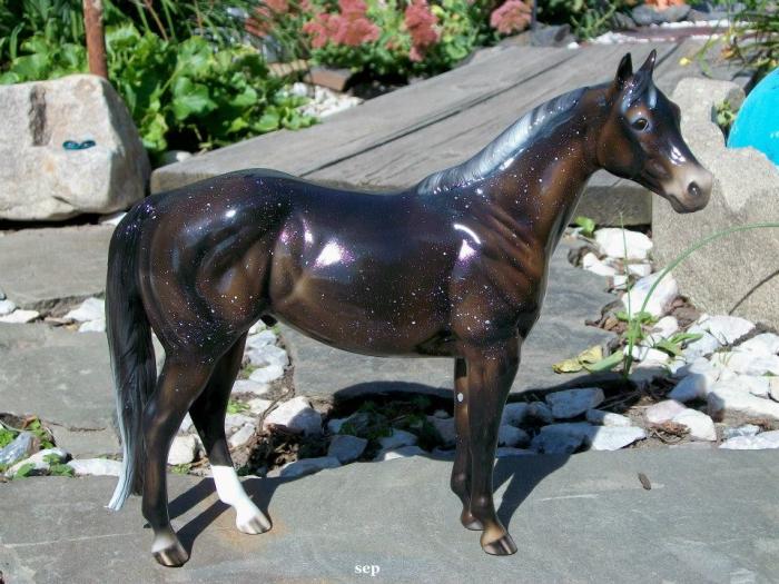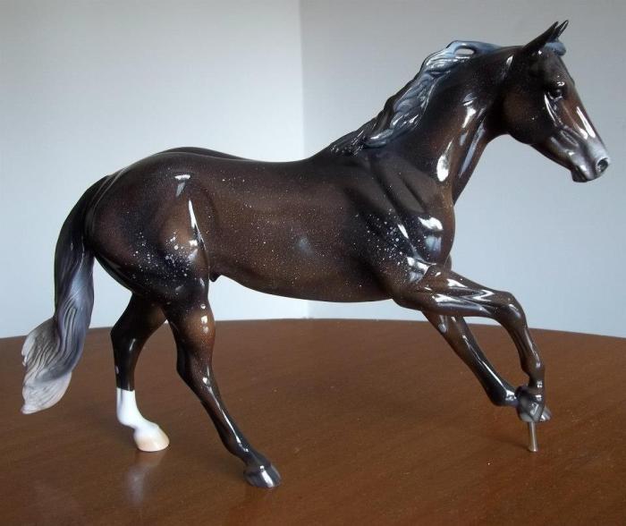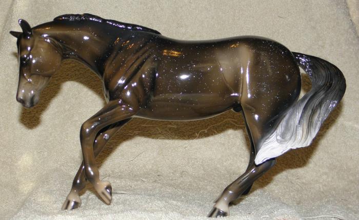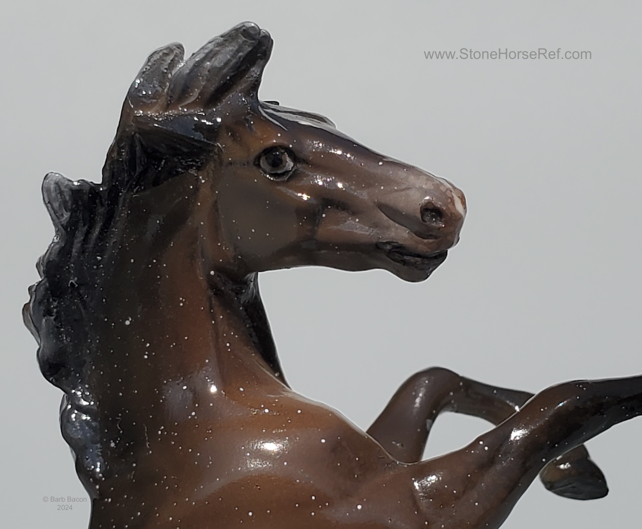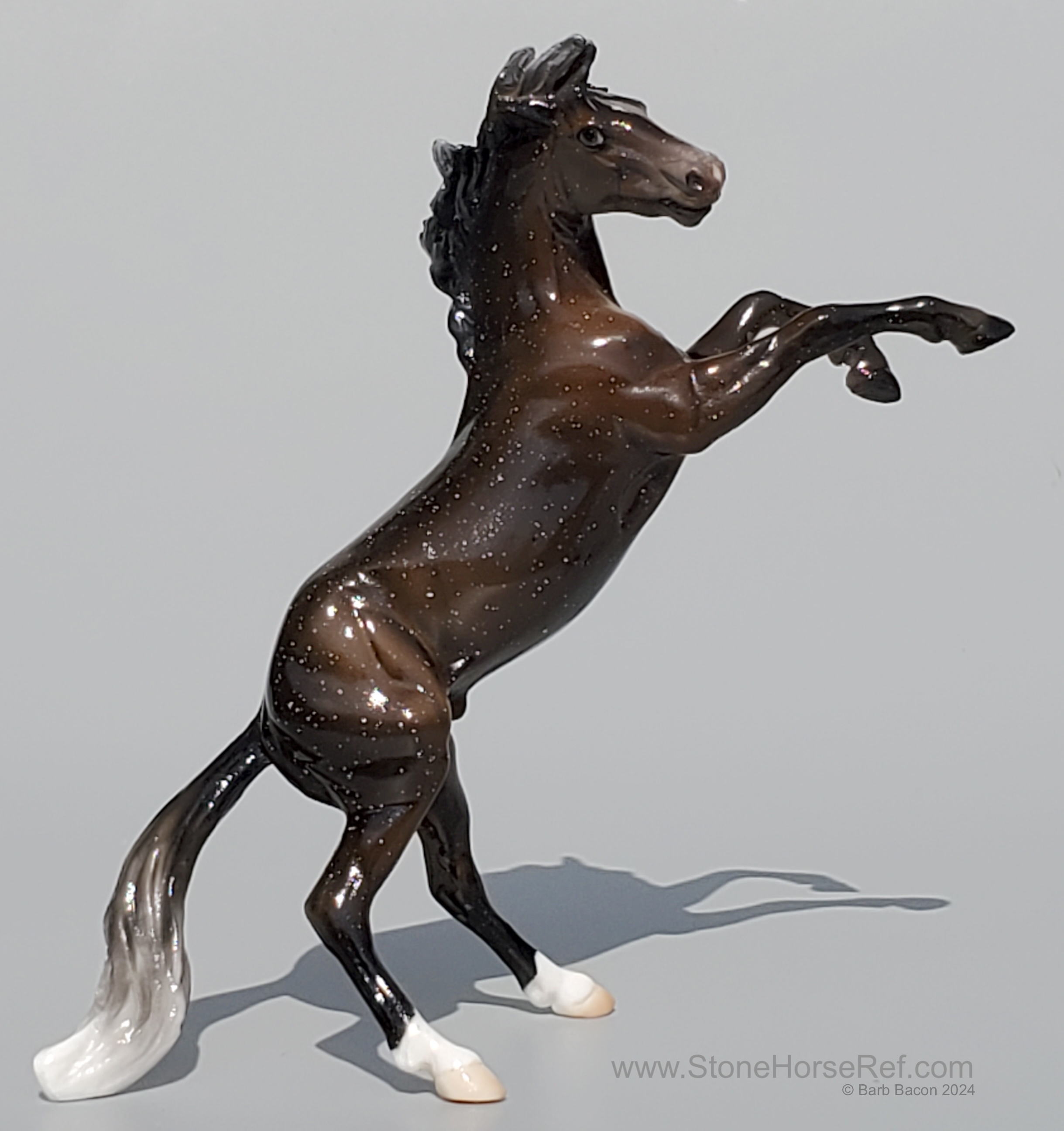 This Snowflake Appaloosa Pattern has been a special color available in the Design A Horse program. It first appeared in 2012, and then again in 2013 during the weekend of Nov 29. The pattern has shading, lots of spots, striped hooves, a shaded mane and tail, and a light skinned mottled nose. Please note the 2012 version only comes with one sock. The sample was done on the 2012 enhanced stock horse body. The actual amount, size, and location of the spots will vary for each model. Not available on Pebbles or Chips until 2013. Comes with hoof stripes unless you choose a leg marking.