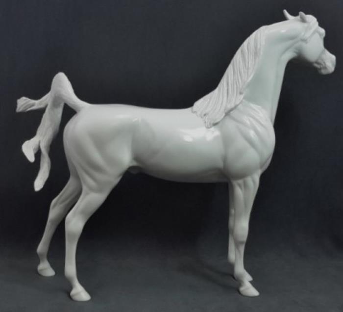 DAH PM1209 Custom Pinned Ear Arabian, Custom Split Forelock, Custom Hanks of Mane on Show Side, Pinned Ears, Custom Lifted Split Tail, Slightly Carved Jaw and Nostrils, Carved Nose Wrinkles. Hand Crafted in Shipshewana, IN.