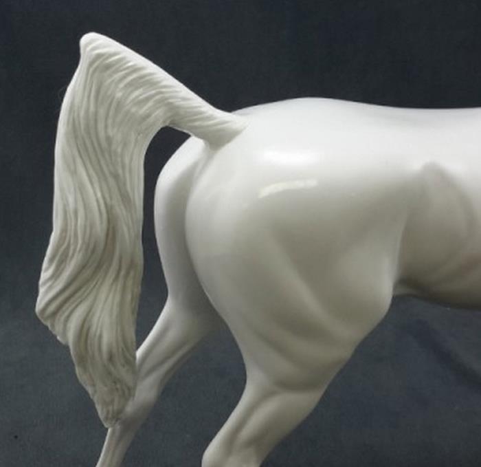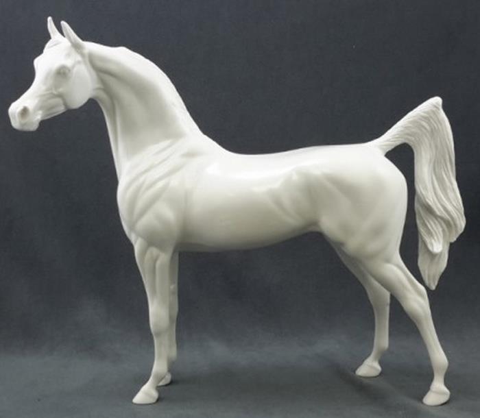DAH PM1244 Lifted Tail Arabian - Arabian Mare, Custom Long Forelock, Custom Lifted Tail, Carved Bridle Path, Carved Ears, Nostrils and Jaw, Carved Nose Wrinkles, 2/15. Hand Crafted & Painted in Shipshewana, IN.
