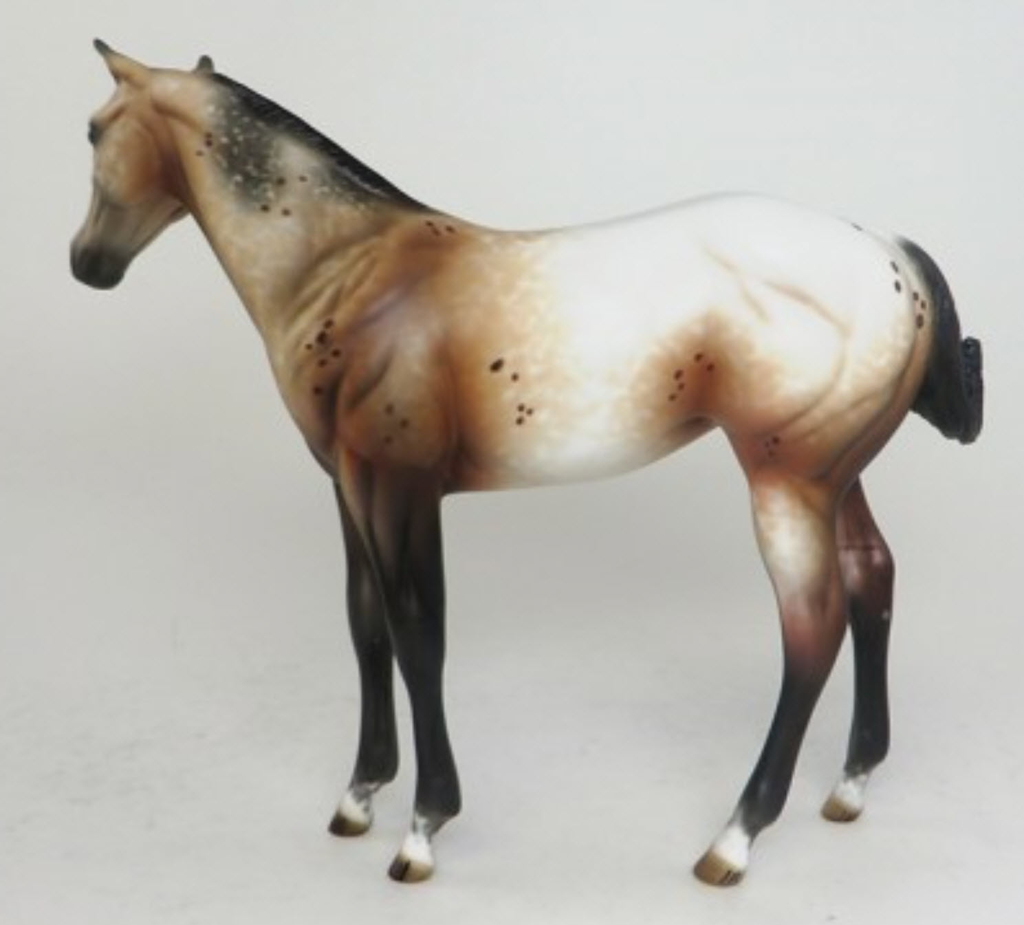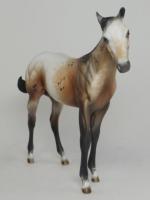 MISTRAL WIND - OOAK Bay Appaloosa Weanling, Turned and Tucked Head, Custom Mane, Carved Ears, Nose and Jaw, Custom Tail, Hoof Stripes, Painted and Signed by Al, 11/25. Hand Crafted & Painted in Shipshewana, IN.