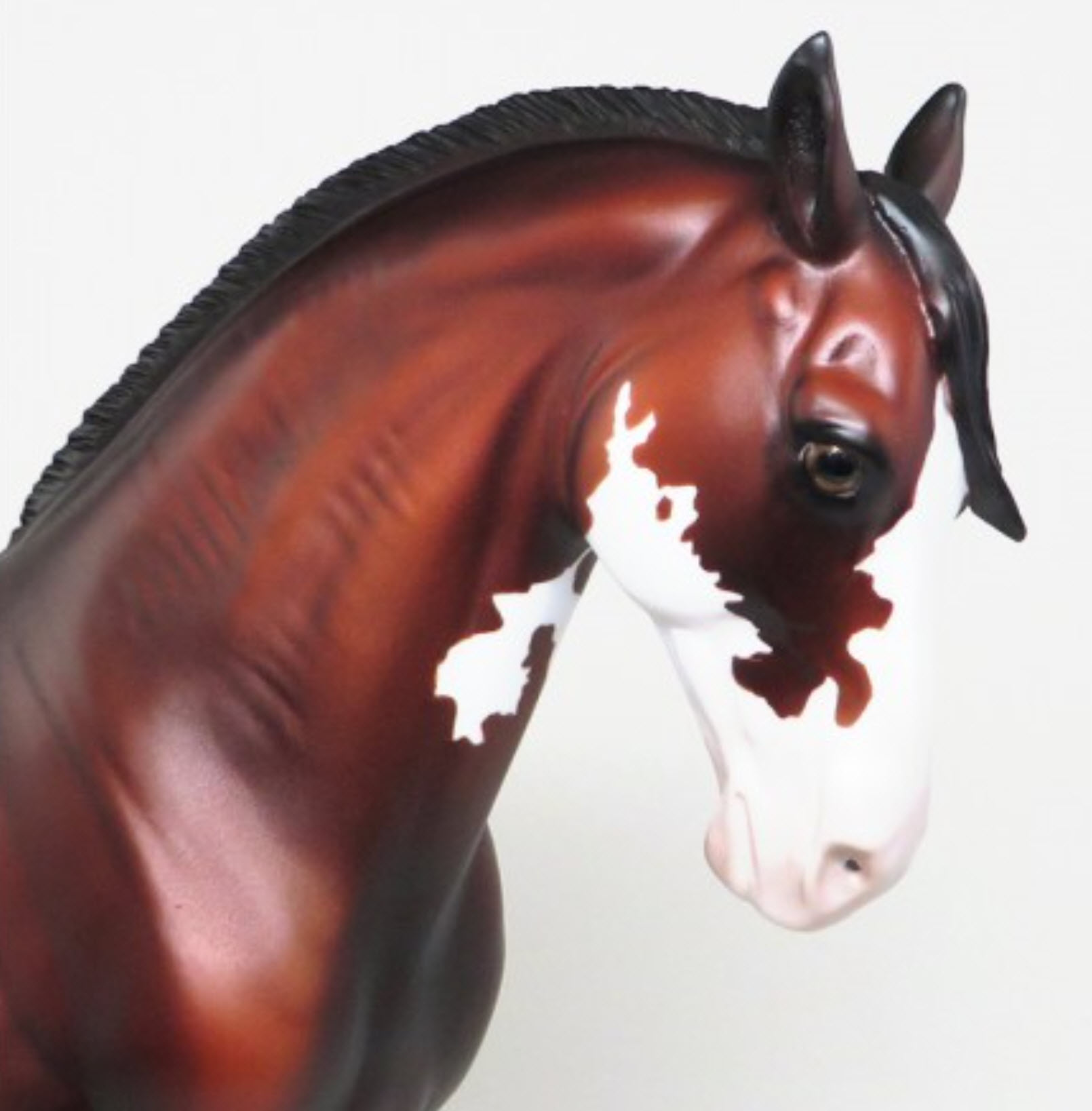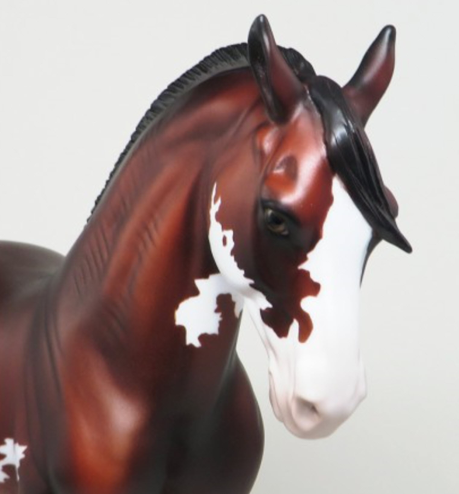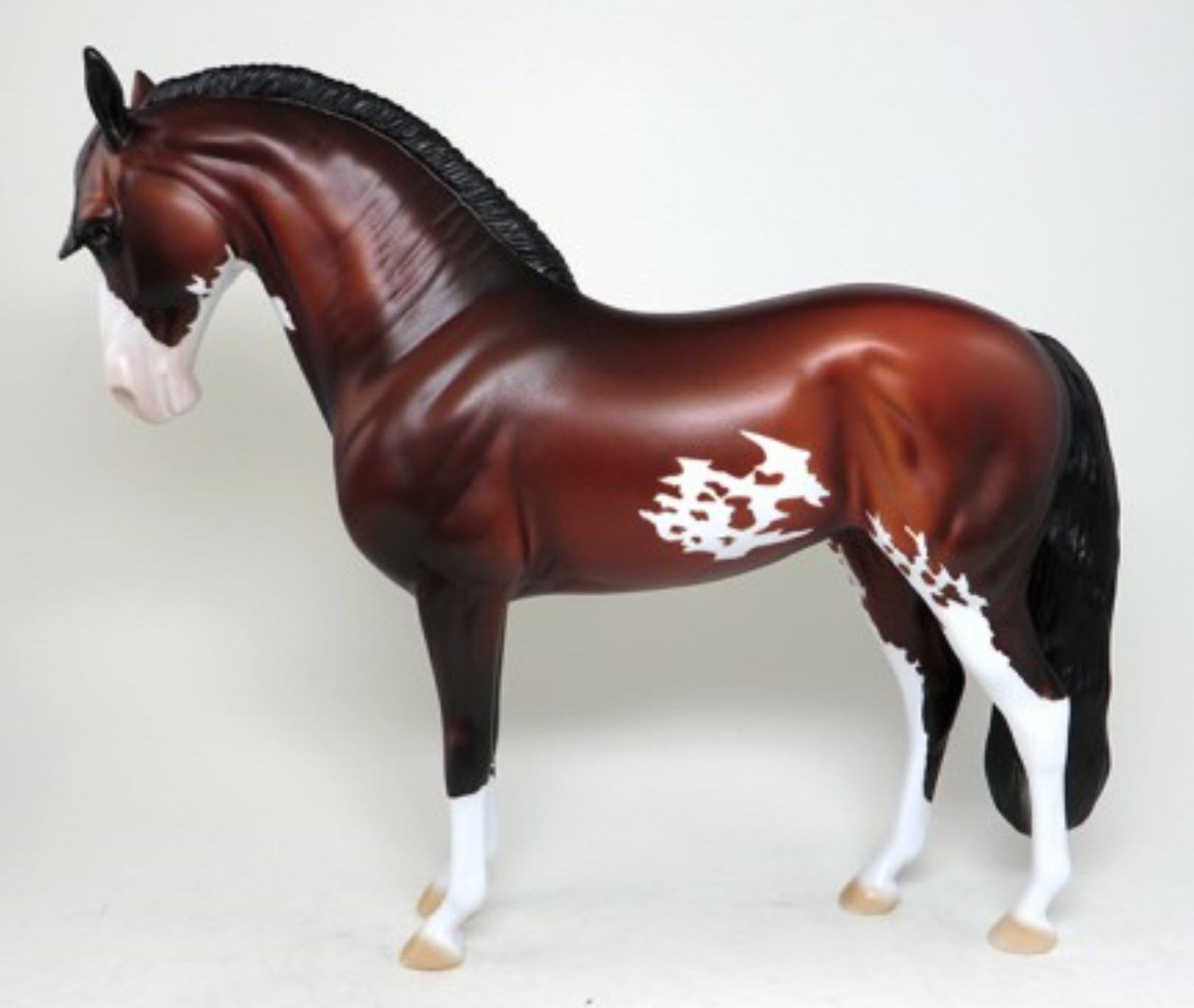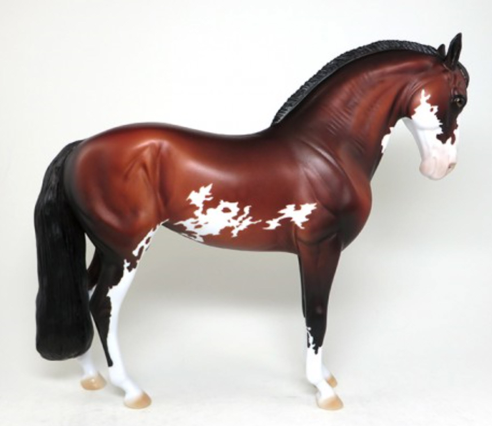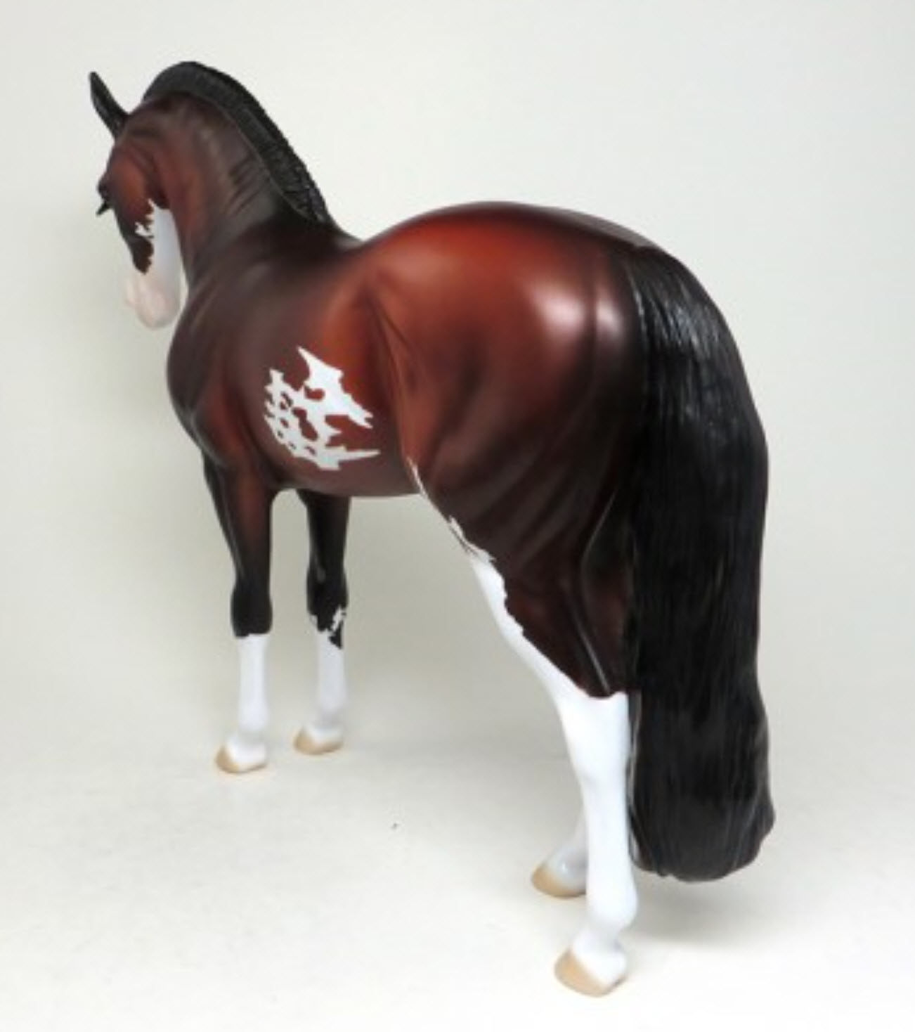 Berlin - Limited Edition Pre-Order, Bay Paint Andalusian, Blue Eyes, Mare, Roached Mane with Long Forelock, Carved Ears, Nose and Jaw, 4/14. Released at Midwest Horse Fair.