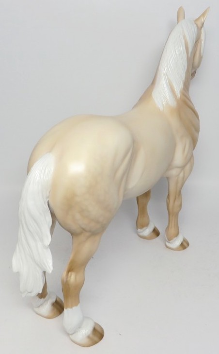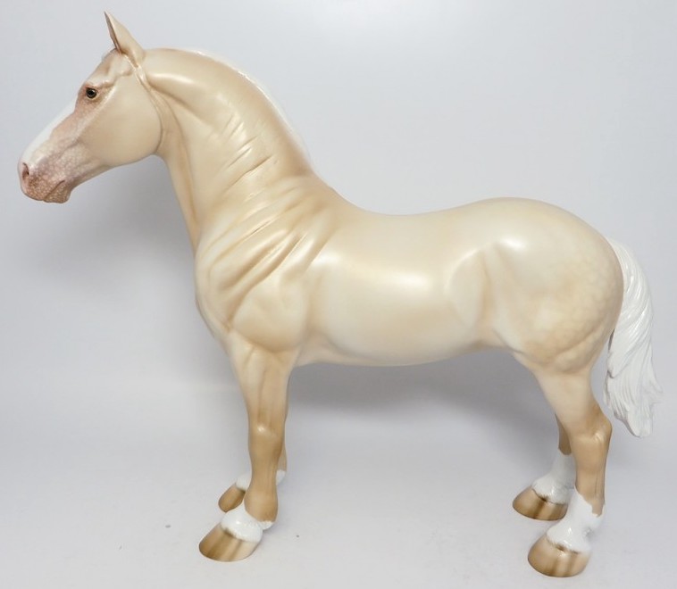 AMERICAN PIE - Limited Edition of 5, Dapple American Cream Standing Draft, Twitched Ear, Custom Mane, Forelock and Tail, Green Eyes, Carved Nose, Ears and Jaw, Hooves Stripes EQ 2017. Hand Crafted & Painted in Shipshewana, IN.