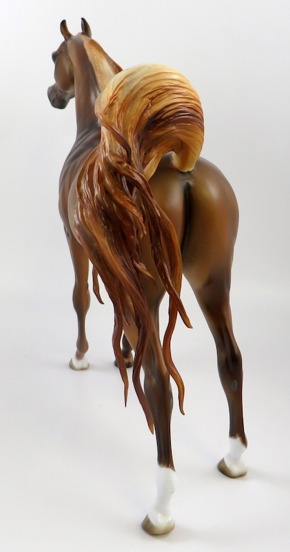 Archard - OOAK Chestnut Rabicano Arabian, Custom Straightened Head, Carved Bridle Path, Custom Mane, Forelock and Tail, Etched Blaze, Nose Pinking and Kissy Spots, Etched Socks with Ermine Spots, Hoof Stripes, Painted and Signed by Julie Keim. Best Offer.