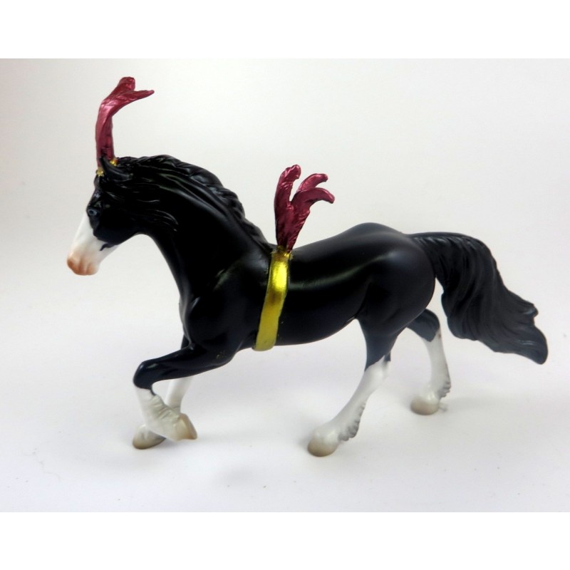 AMEDEUS - OOAK Black Friesian Chip, Custom Red Plums, Painted by Missy Fox, LHS 19. Hand Crafted & Painted in Shipshewana, IN.