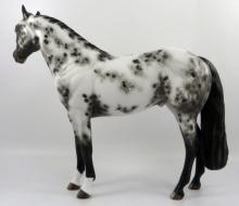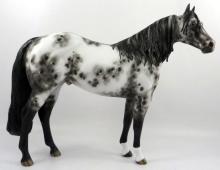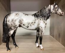 Gazer Beam - OOAK Appaloosa ISH, Custom Mane, Forelock and Tail, Etched Pink Snip, Front Socks, and Hoof Stripes, Painted by Sheryl Leisure. Best Offer.