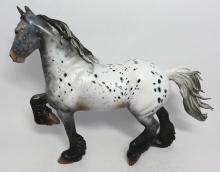 BANK ON IT - Limited Edition of 3, Trotting Drafter Gelding, Grey Appaloosa, Custom Mane, Mottling, Custom Tail, Midwest Horse Fair 2018. Hand Crafted & Painted in Shipshewana, IN.