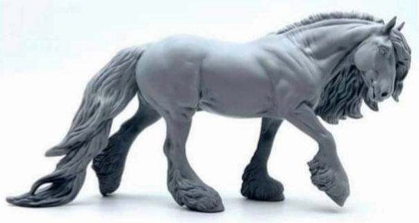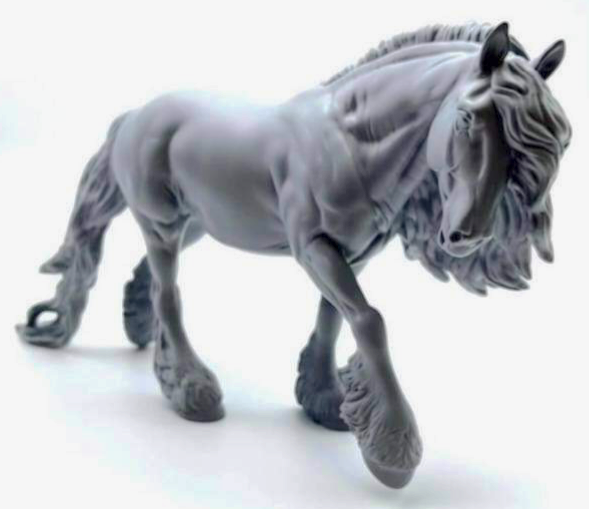Drum Horse Resin - "Limited Edition, Please note that this resin is very large and we consider it to fall under the Drum Horse breed standards. This resin is limited and Measures 8" at ear tip and from nose to tail around 14" long. This will be the only cast in this size. The plastic 'Stone Line' version will be scaled down to Irish Cob size. Sculpted by Rayvin Maddox of Khrysalis Studios. Casted by Mounted View Studios. These are set to be cast the first week of January (2022)." www.stonehorses.com.
