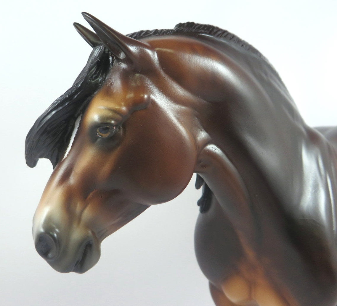 Fa Boo Lous - OOAK Star Dapple Bay Heavy Draft Mare, Custom Mane, Tail and Forelock, Carved Bridle Path, Hoof Stripes, Painted and Signed by Sheryl Leisure, LSH 19.