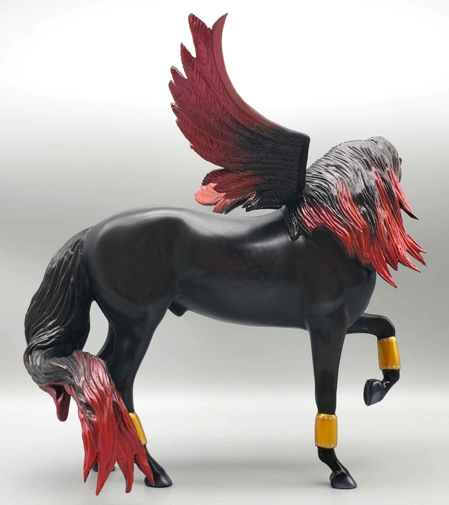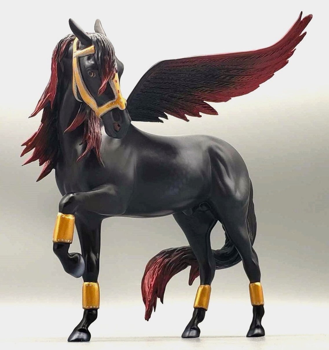 Affinity - OOAK Dapple Black Andalusian, Custom Forelock, Mane and Tail, Custom Turned Head Custom Front Leg, Custom Wings, Customized by Matt and Carissa, Painted by Carrie Keller. Best Offer.