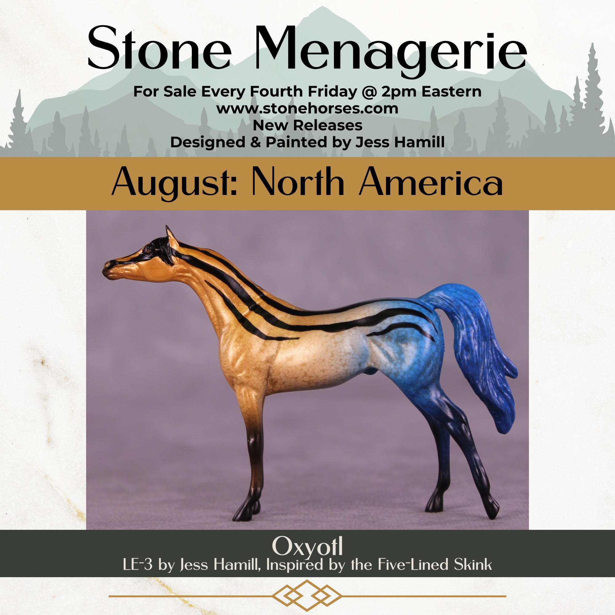 Oxyotl - Limited Edition of 3, Five-Lined Skink Inspired Arabian Chip, No Finish Options, Painted by Jess Hamill. Menagerie Series August 2025.